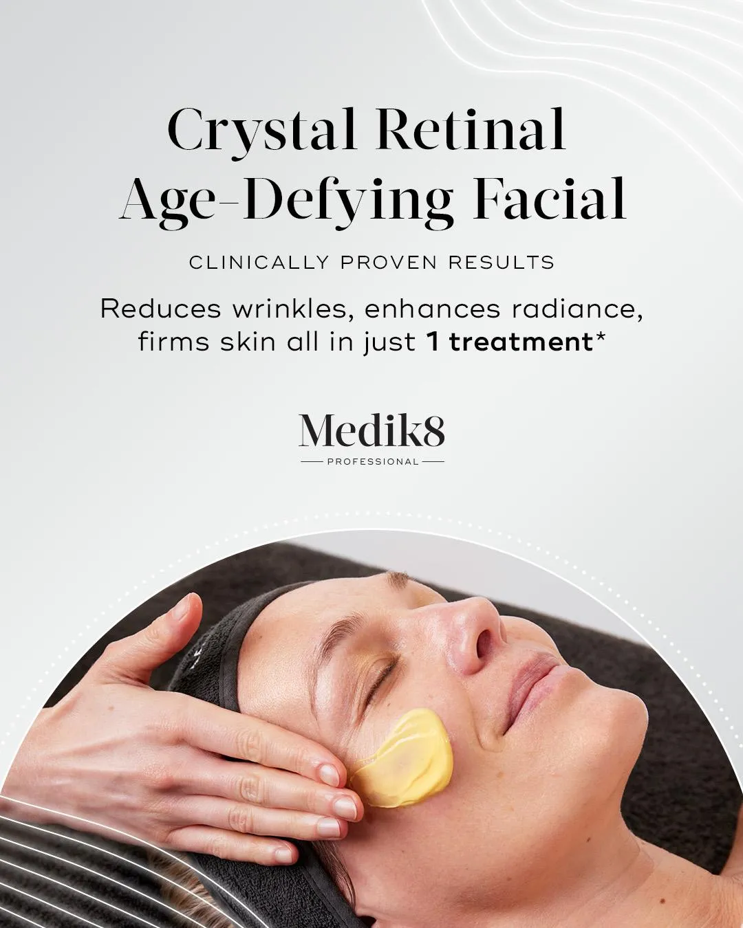 Reveal smoother, brighter, and more luminous skin. Medik8 facials help resurface dull complexions, restoring a healthy glow and even tone.